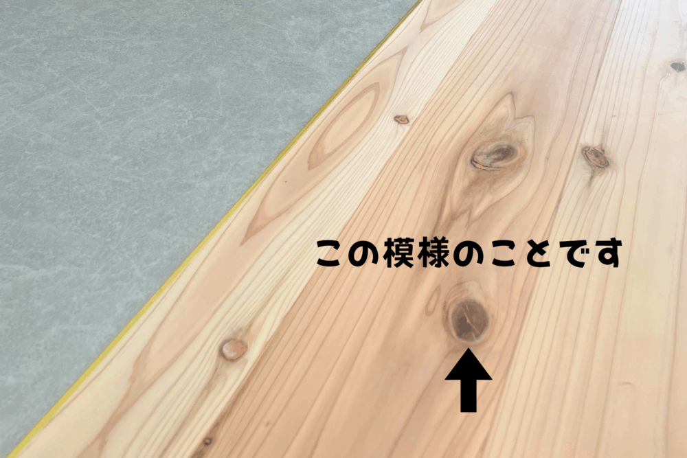 節とは、枝が生えていた部分のあと。木の表面に現れる丸い模様のことです⇩