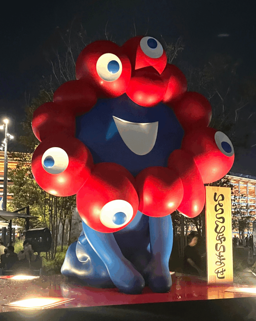 友人とミャクミャクカラーを意識して、青×赤を取り入れた服装でキメていたのに、秒でびしょ濡れ(笑)